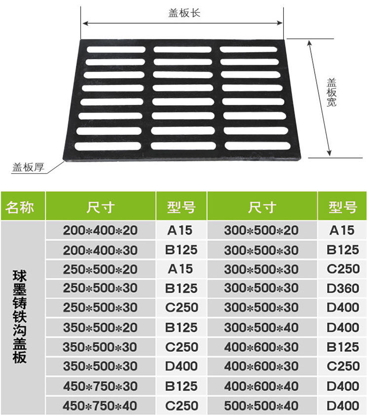 用途:主要用于市政道路和一般道路的排水設施,工廠排水溝蓋,地下室排水溝、一般建筑排水設施及檢查井設施。